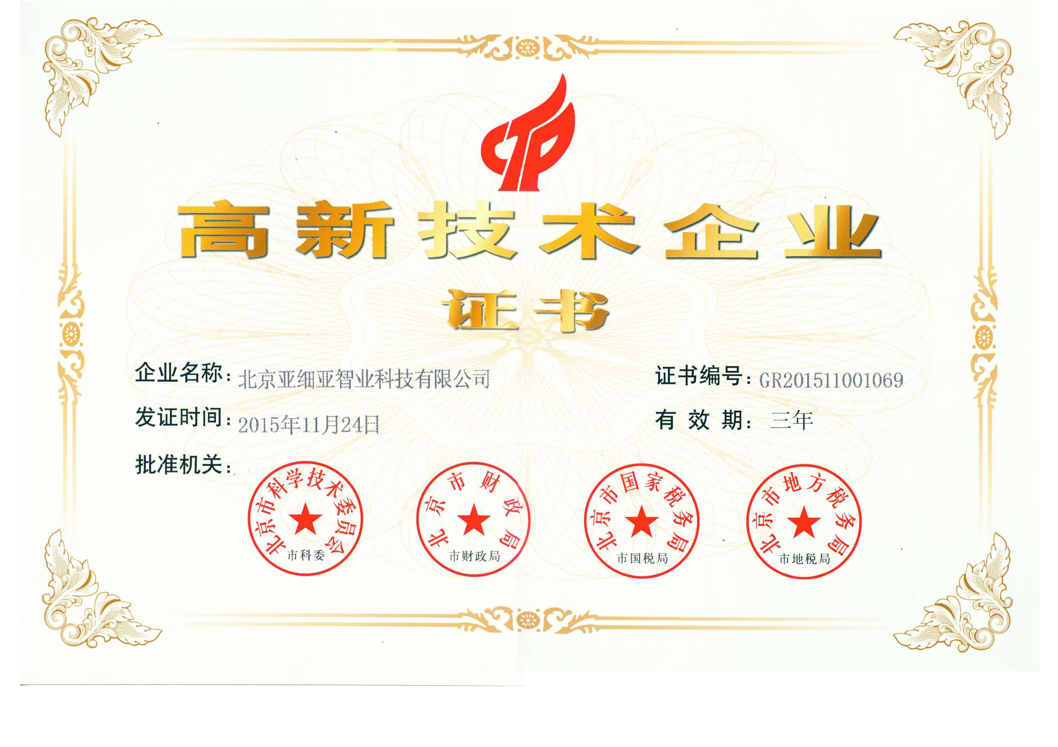 2015年高新技術企業(yè)證書