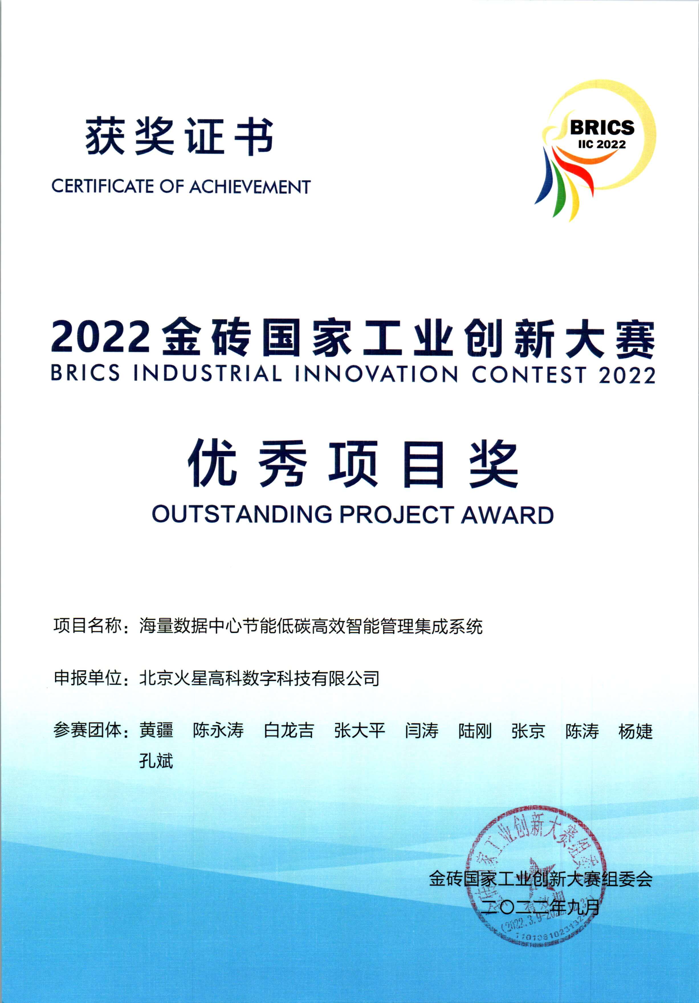 2022金磚國家工業(yè)創(chuàng)新大賽--優(yōu)秀項目獎