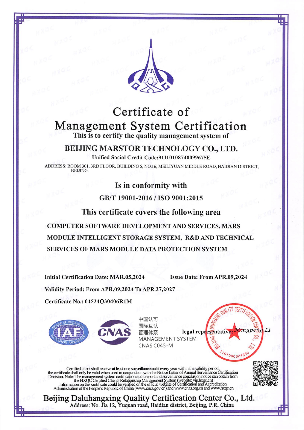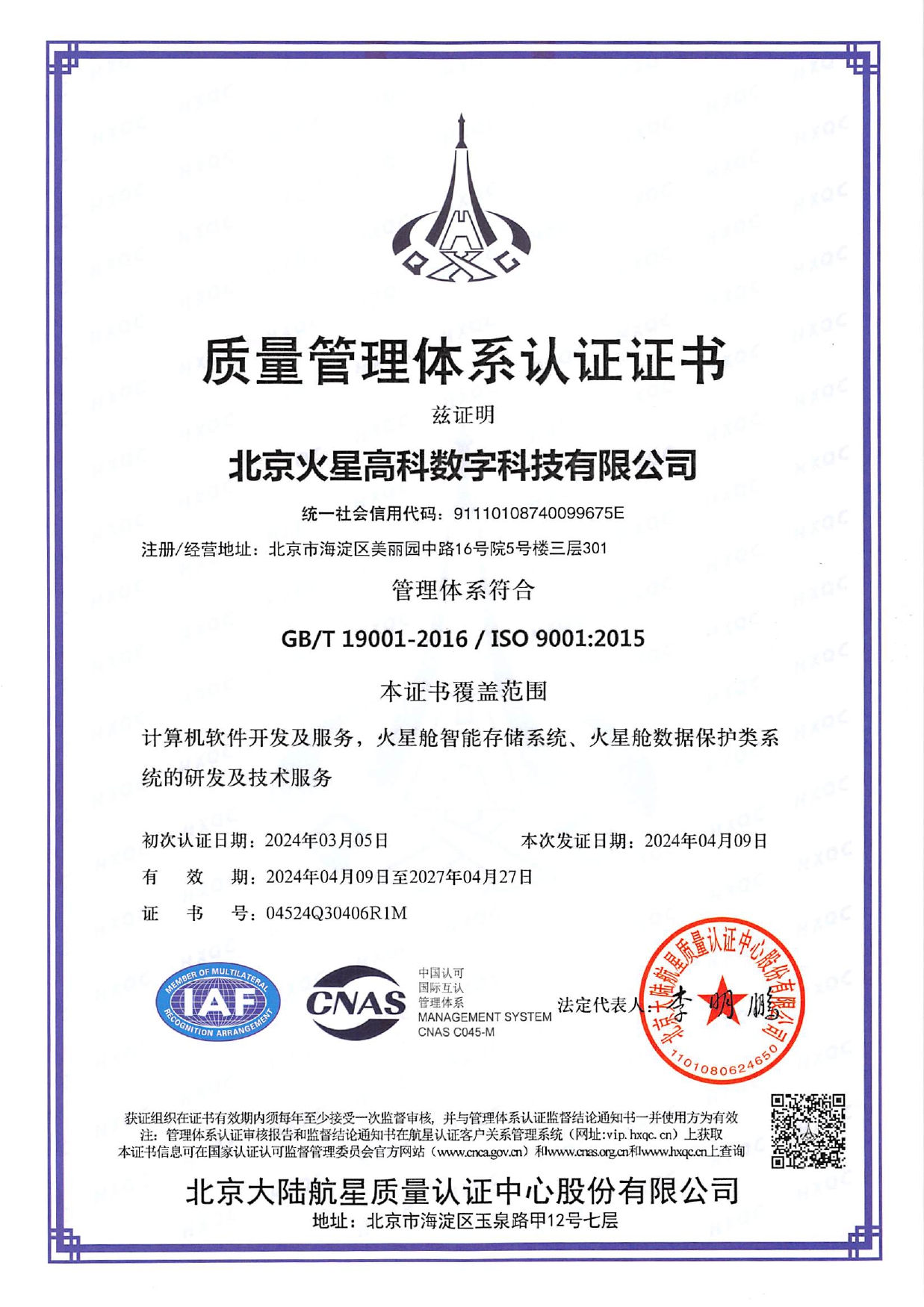 2024質量管理體系認證證書(中英)-9001